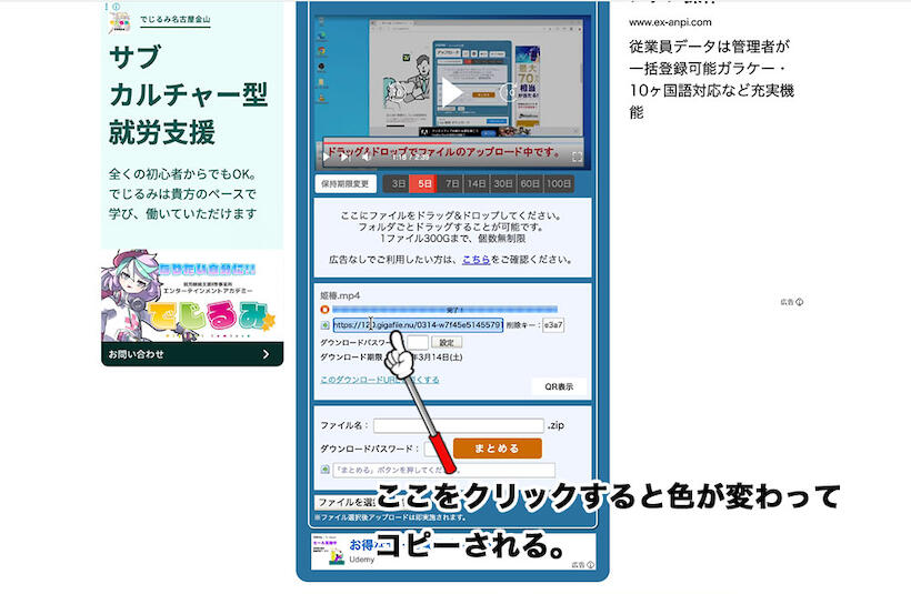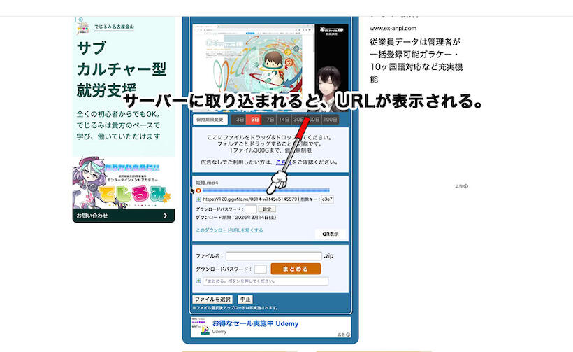 ② アップロードが完了すると、ダウンロード用のURLが表示されます。
